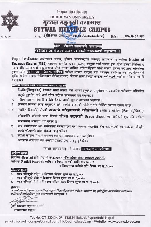 MBS चौथो सेमेष्टरको परीक्षा आवेदन फारम भर्ने सम्बन्धी सूचना