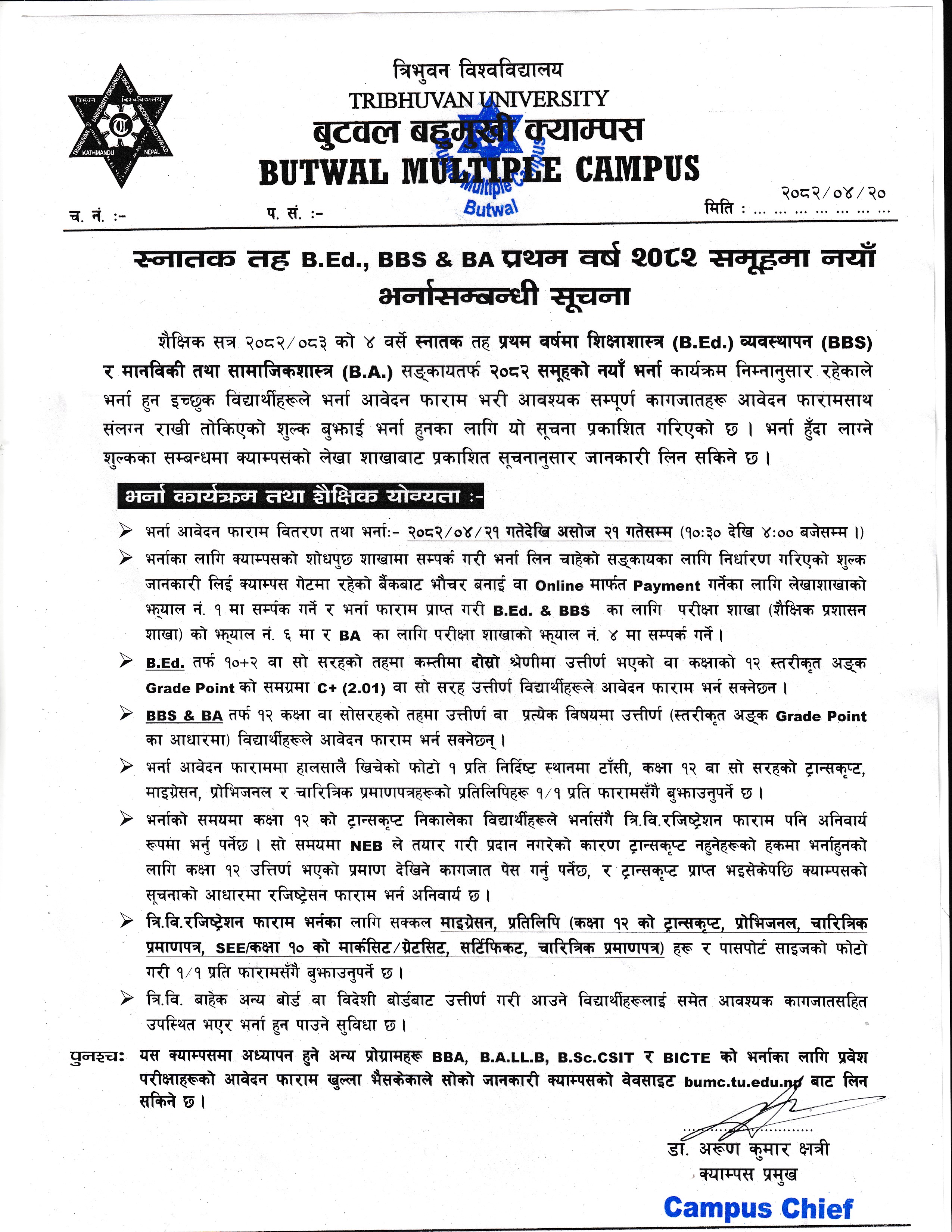 B.A./ B.Ed./B.Sc./ BBS(2078 Batch) चौथो वर्षको आन्तरिक परीक्षा सम्बन्धी सूचना